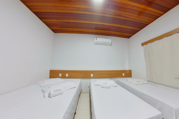 Quarto Duplo do Hotel Jusman em Novo Progresso PA Quarto preparado para casal ou duas pessoas. Excelente para viagens entre amigos ou família. Dispondo dos melhores serviços hoteleiros da cidade para lhe proporcionar uma estadia inesquecível em Novo Progresso PA Voltar Ampliar Ampliar